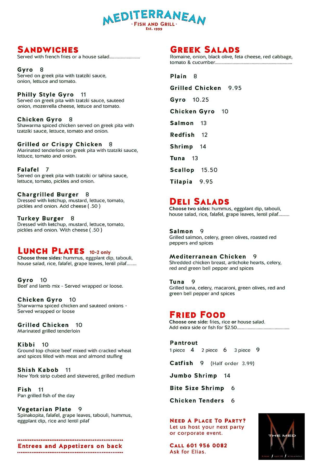 If you have a craving for some of the best fish in Mississippi, stop by the Mediterranean Fish & Grill. We have the best lunch and dinner specials in town! Take a look at our lunch menu or visit our website at http://www.medfishngrill.com/ for more details.